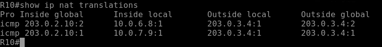 Now apply NAT overload using the public addresses on R10’s outside interfaces.