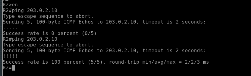 (Ping from R2 before and after translation)